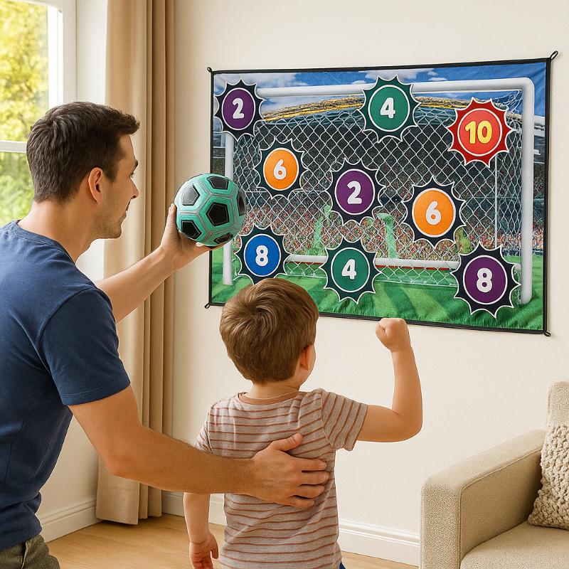 The set includes a soccer ball, a sticky flannel target, and ground stakes for outdoor use. Everything is simple to set up, so kids jump into the action quickly. Whether at home, in the park, or on a family outing, the game creates an engaging play environment anywhere.