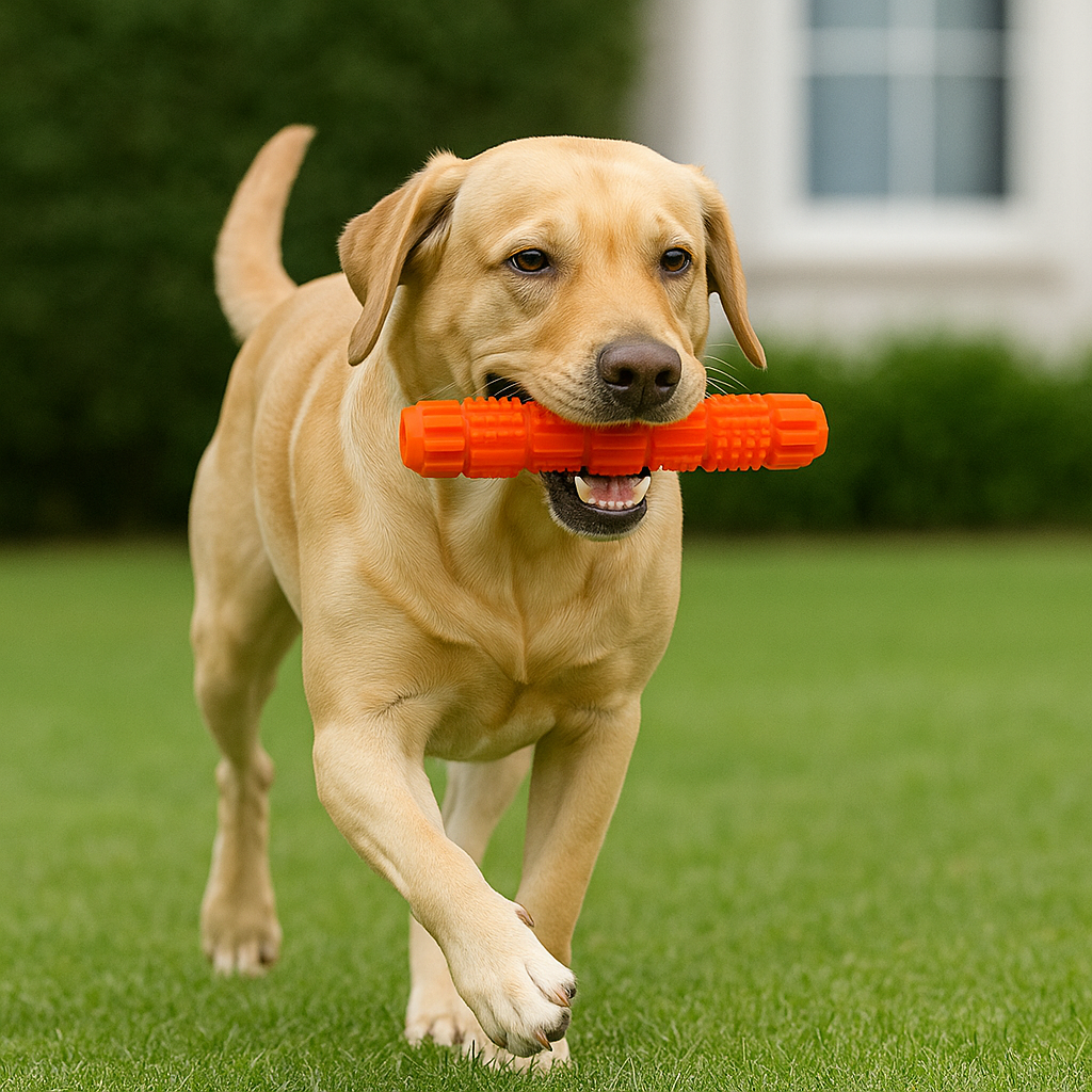 We use it as a toothbrush toy with a little dogsafe paste in the grooves. He thinks it's a game, but really he’s brushing his teeth.