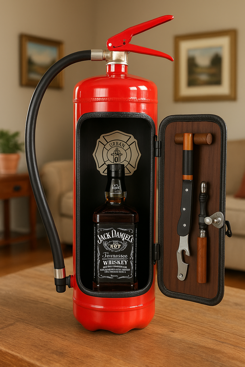 Make a bold statement in your home or man cave with BlazeBar, the unique mini bar repurposed from a real fire extinguisher. It’s a rugged, eye-catching piece that blends industrial style with functionality.