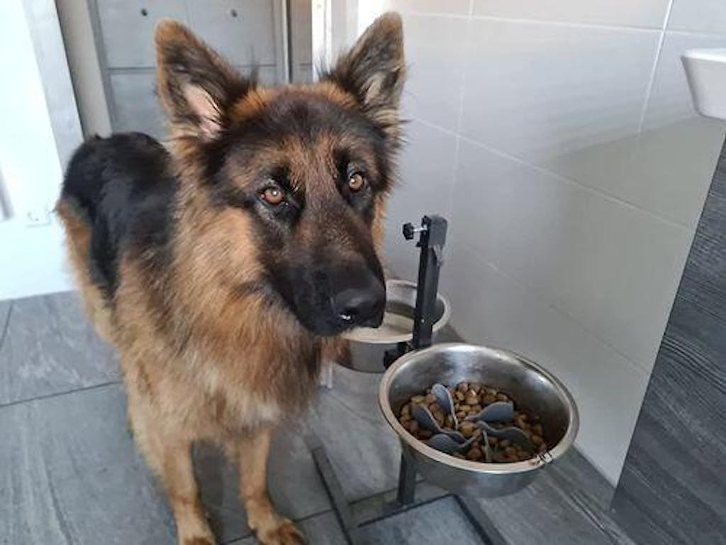 Was very unsure after reading reviews. I had been looking for something to keep my girl raised while eating and found this life saver. Could not recommend enough. Suitable for large dogs most definitely. I have a GSD and she now takes at least 5 mins to eat, whereas before she would have scoffed in 30 seconds.