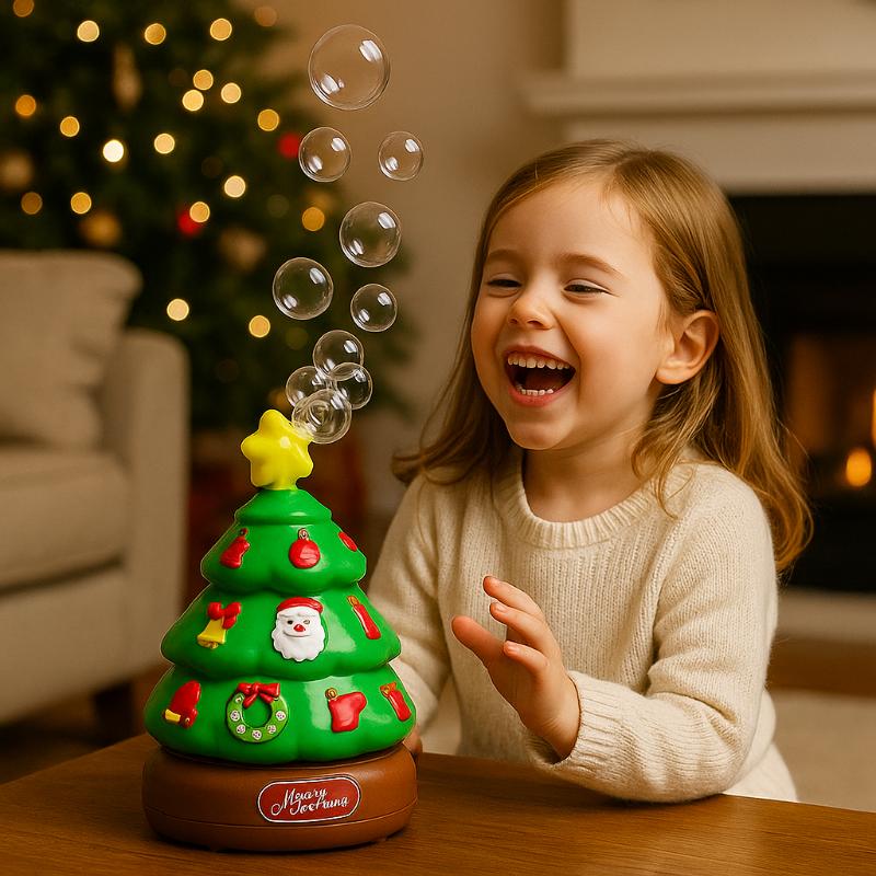 Infuse your home with holiday spirit through the Bubblia, an enchanting and interactive music box designed like a tree, which fills your surroundings with joyful melodies, swirling bubbles, and festive charm, crafting memorable experiences for loved ones and cherished events.