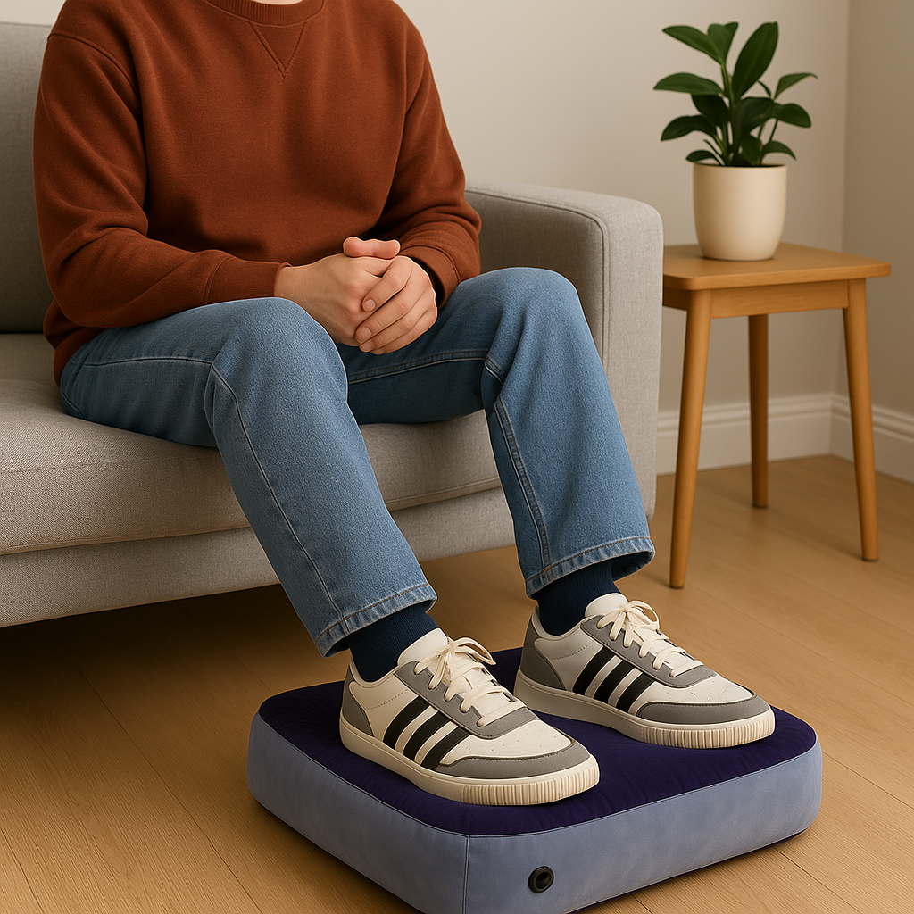 Experience soothing leg relief wherever you are with CalmaLift, the lightweight inflatable cushion that improves circulation, reduces swelling, and brings instant comfort at home, work, or while traveling. With just a few breaths, you can set it up and enjoy the support you need.