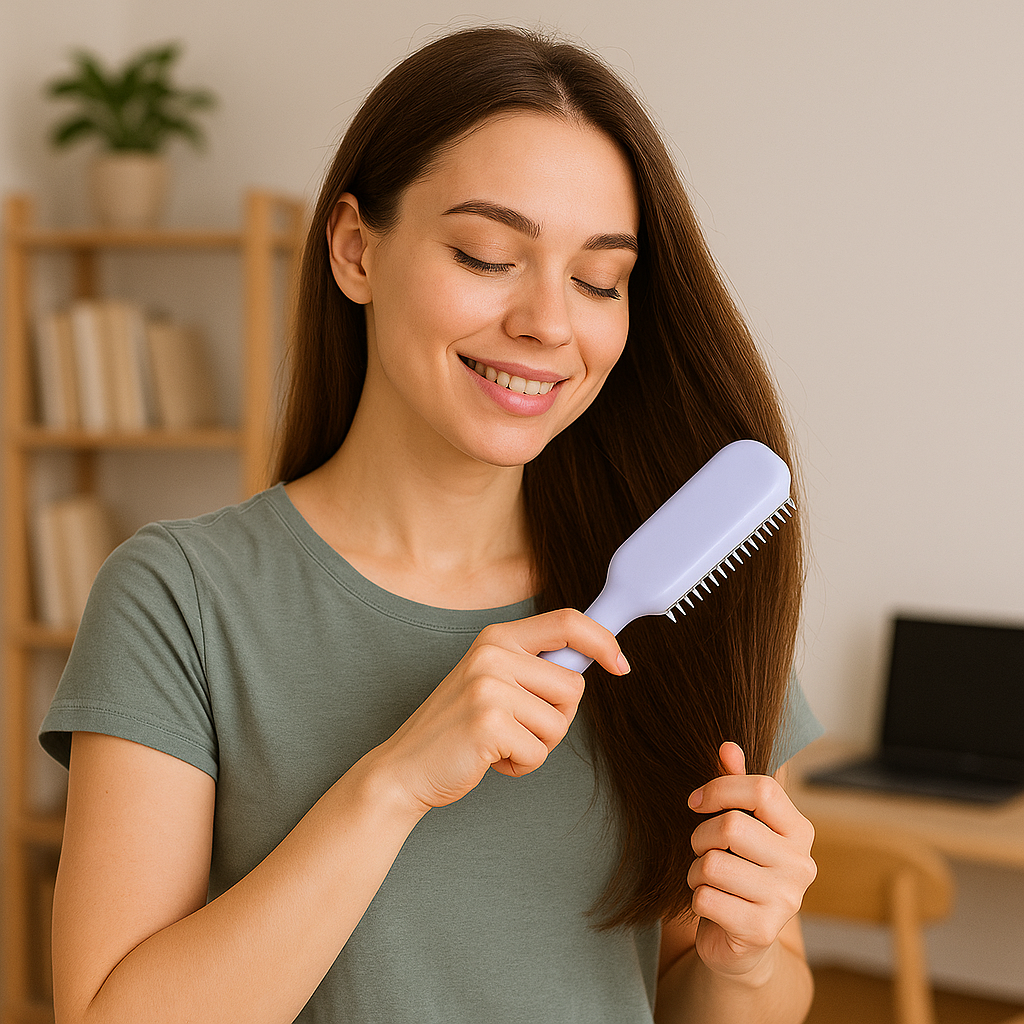 Transform brushing into a soothing experience with CalmBrush, the anti-static hairbrush that detangles gently, massages your scalp, and cleans itself with a twist of the handle—making daily hair care easier and more enjoyable.