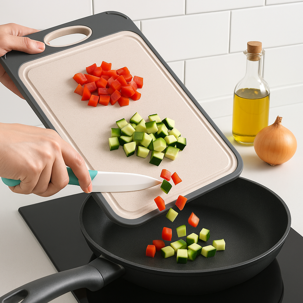 Upgrade your kitchen workflow with ChopNest—a dual-sided chopping board designed for versatility, hygiene, and easy cleanup. Its smart two-surface design lets you switch effortlessly between different ingredients without the need for multiple boards.