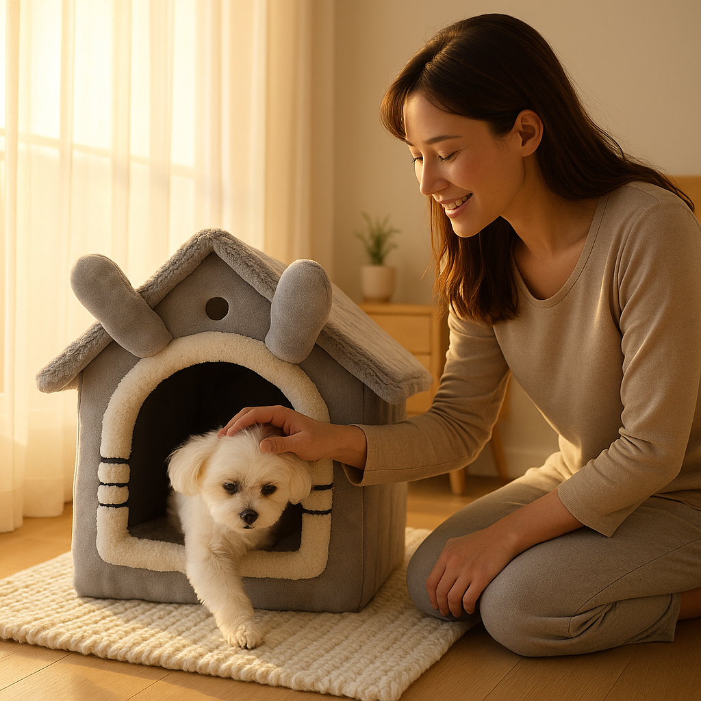 perfect hideaway for pets who like their own little corner. easy to move around and doesn’t take up too much space. I like that it’s lightweight but still feels secure