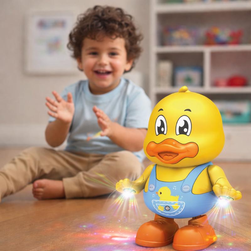 Danceroo springs to life with joyful tunes, blinking LED lights, and an exciting walking-and-dancing motion that immediately draws attention. As it engages, children are motivated to crawl, pursue, and keep pace with it, turning passive enjoyment into active exploration. Its whimsical duck design adds appeal and entertains kids without overwhelming their senses.