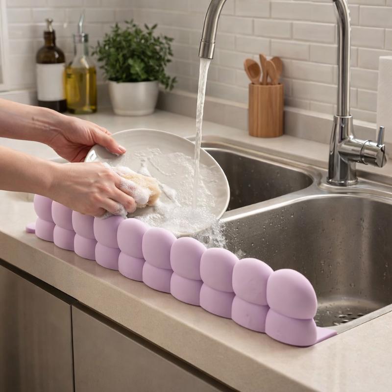 Pretty happy with this one. The silicone design is soft and easy to handle and it does help keep the counter area drier during sink use. my kitchen stays less messy now which is always a win