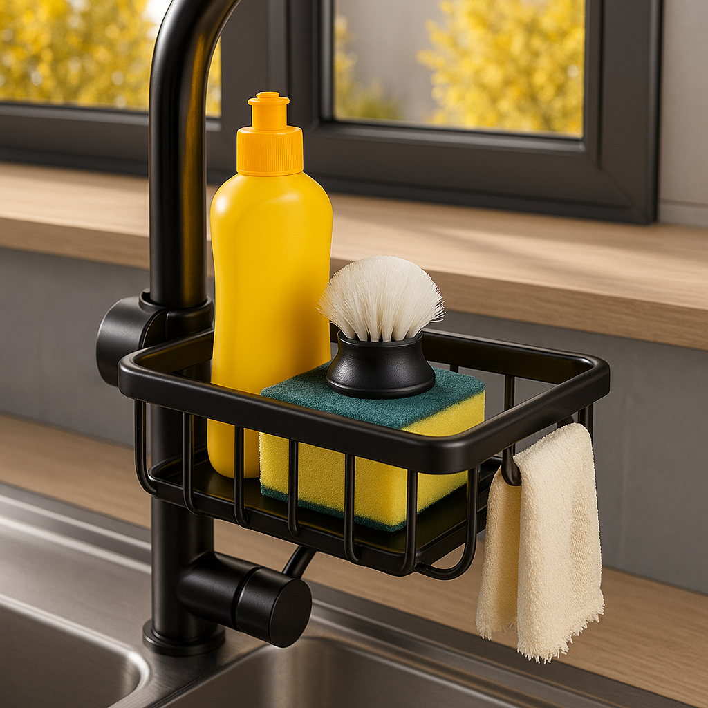Keep your sink area tidy and efficient with FaucetRack, the smart faucet-mounted organizer that dries quickly and keeps essentials within reach, freeing up counter space while reducing mess.