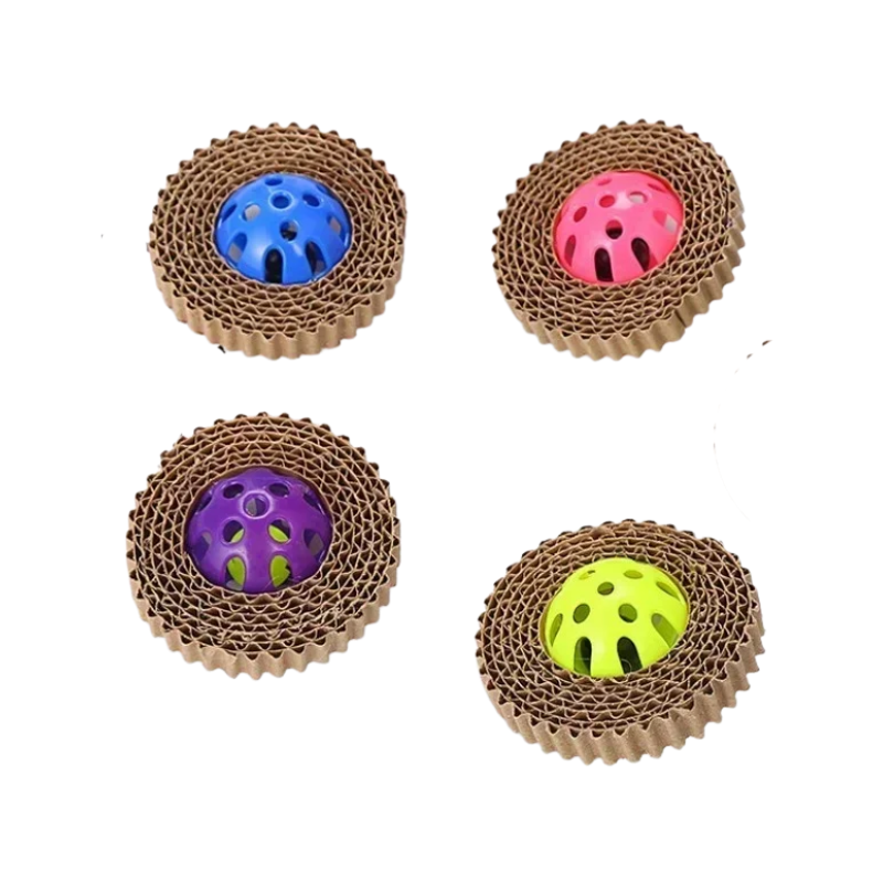 The cardboard makes this so much more than just a ball toy. my cat’s not even into most stuff but this got her attention right away. doesn’t make noise or move much, but still a hit.