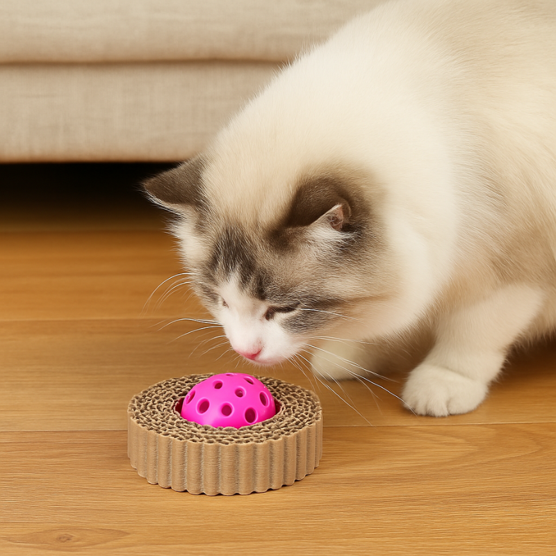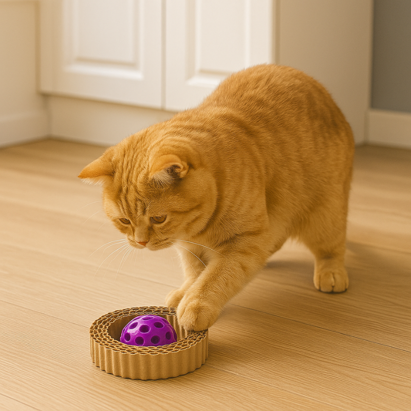 I got this just to try it out and now it’s his fav. he paws at it, chews a bit on the cardboard, and rolls the ball like he’s playing soccer. honestly really fun for him and cute to watch.