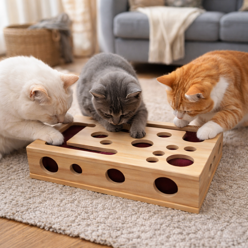 Designed to withstand daily scratching, this enrichment box keeps claws occupied and protects your furniture. Enhance it with catnip, treats, or toys to ignite curiosity and prolong play sessions. Felinox fosters grooming, mental engagement, and overall wellness, ensuring cats remain calmer, healthier, and more joyful each day.