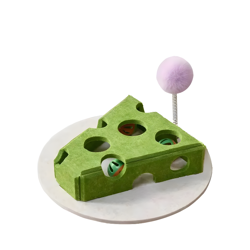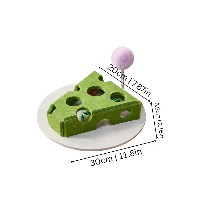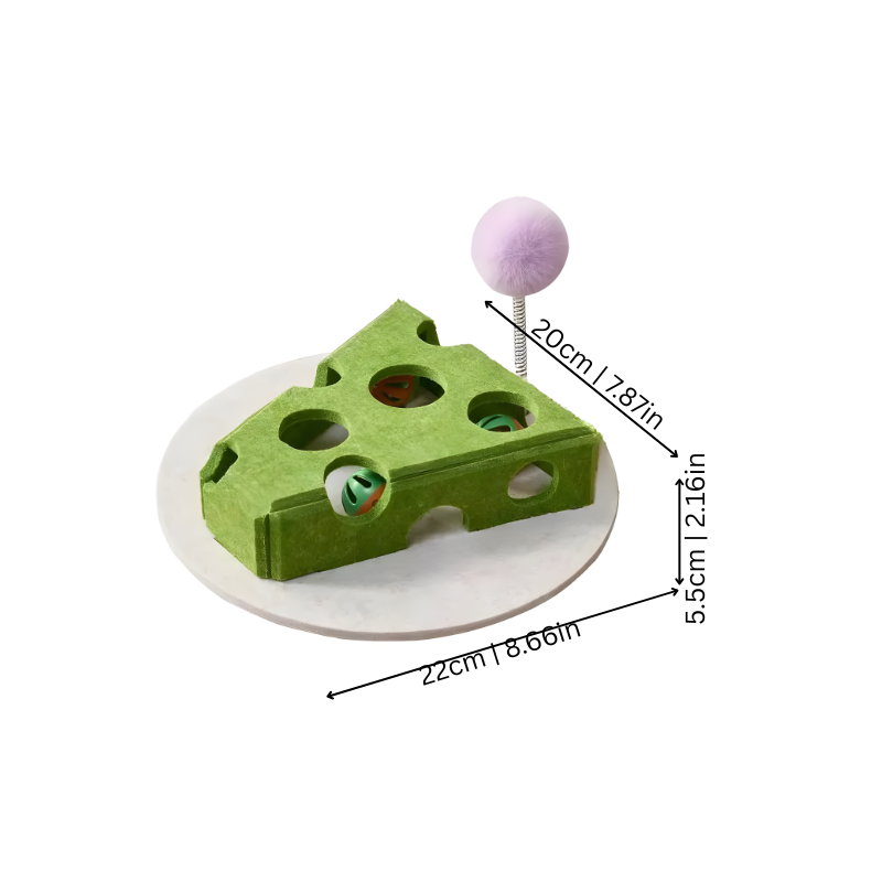 My cat was instantly curious about this toy. She stuck her paws in the cheese holes and tried fishing the balls out. It’s so fun to watch