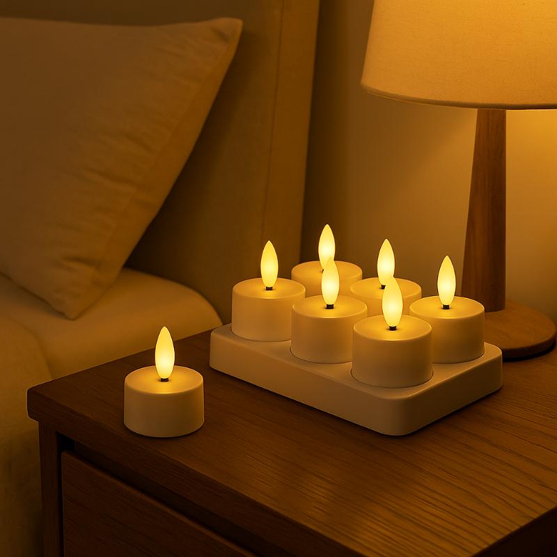 the charging base is a game changer tbh, no more buying batteries constantly. the glow is warm and not too orange or fake looking. they’re a nice little detail for any space