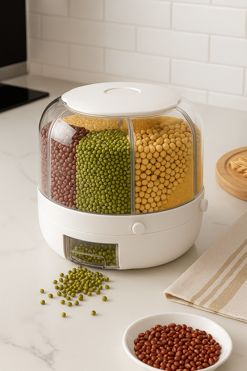 Simplify your kitchen and make meal prep a breeze with GrainFlow, the ultimate 360° multi-grain storage solution. Designed for those who love efficiency, this smart storage system helps you keep your grains organized and easily accessible, transforming your kitchen into a stress-free, space-saving haven where every grain is just a spin away.