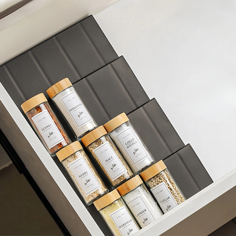 The adjustable layout brings freedom to design your drawer exactly how it works best for you, whether you prefer a compact line-up or a wide layout. It gives you room to fit more bottles without crowding your space, so your kitchen feels more functional even if it’s small. Having flexible storage makes organizing feel less restrictive and much more tailored to your daily routine.