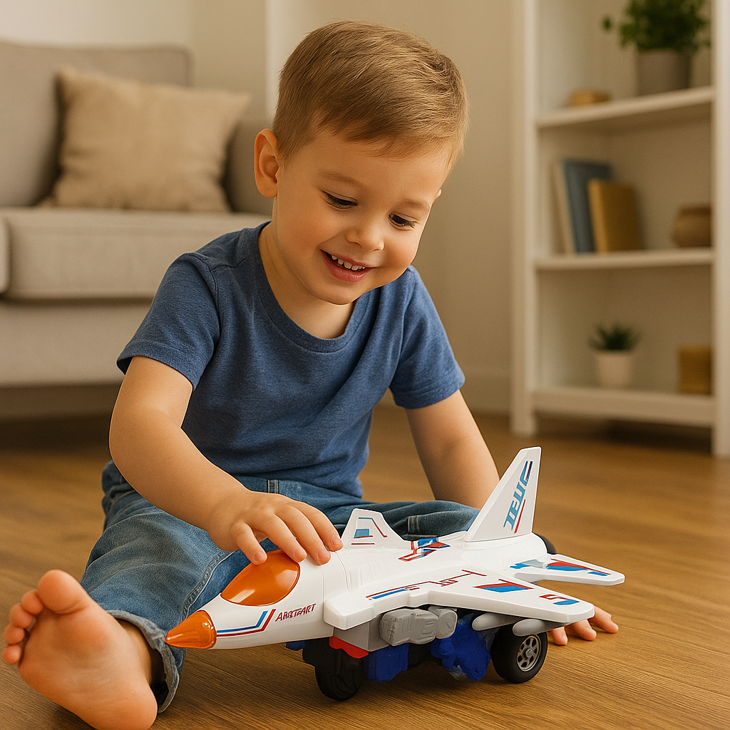 Ignite your child's creativity with the Jetron, the premier illuminated aircraft toy that transforms any space into a dazzling display of lights, exciting sounds, and action-filled escapades, inspiring imagination, delight, and awe in every young aviator aged 4 to 8.