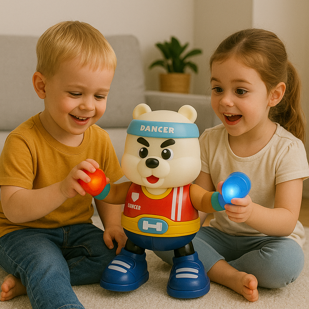 Introduce joy, activity, and laughter to your child's routine with Jiggle, the lively fitness bear that illuminates, dances to music, and encourages children to engage in playful exercise, offering an ideal mix of enjoyment, vitality, and creativity for delightful and healthy playtime experiences.
