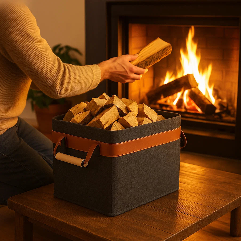 Carry more with less effort using KindleNest, the stylish felt basket that holds up to 35kg of firewood while doubling as a versatile storage solution for your home.