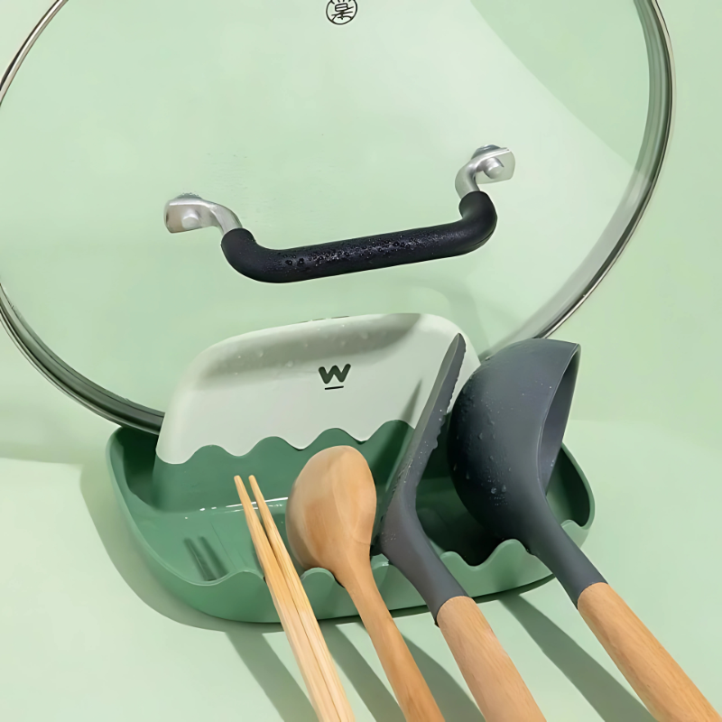Cooking should be enjoyable, not chaotic. This handy stand for your utensils and lids ensures your workspace stays clean so you can concentrate on crafting tasty dishes. Say goodbye to unwanted spills, drips, and scattered utensils. Everything stays organized, keeping your kitchen as delightful as your culinary creations.