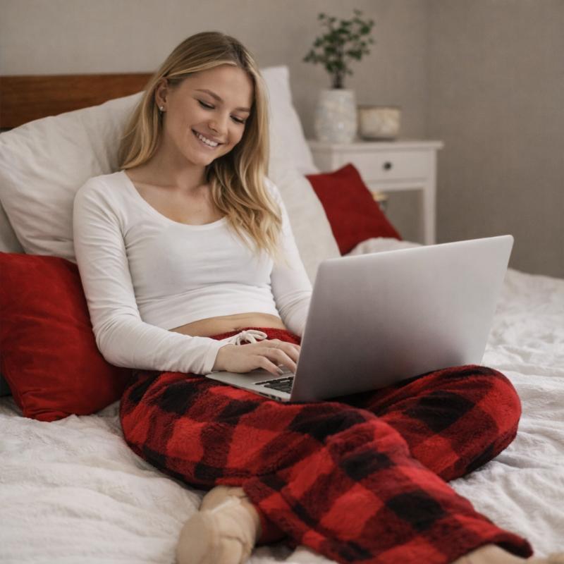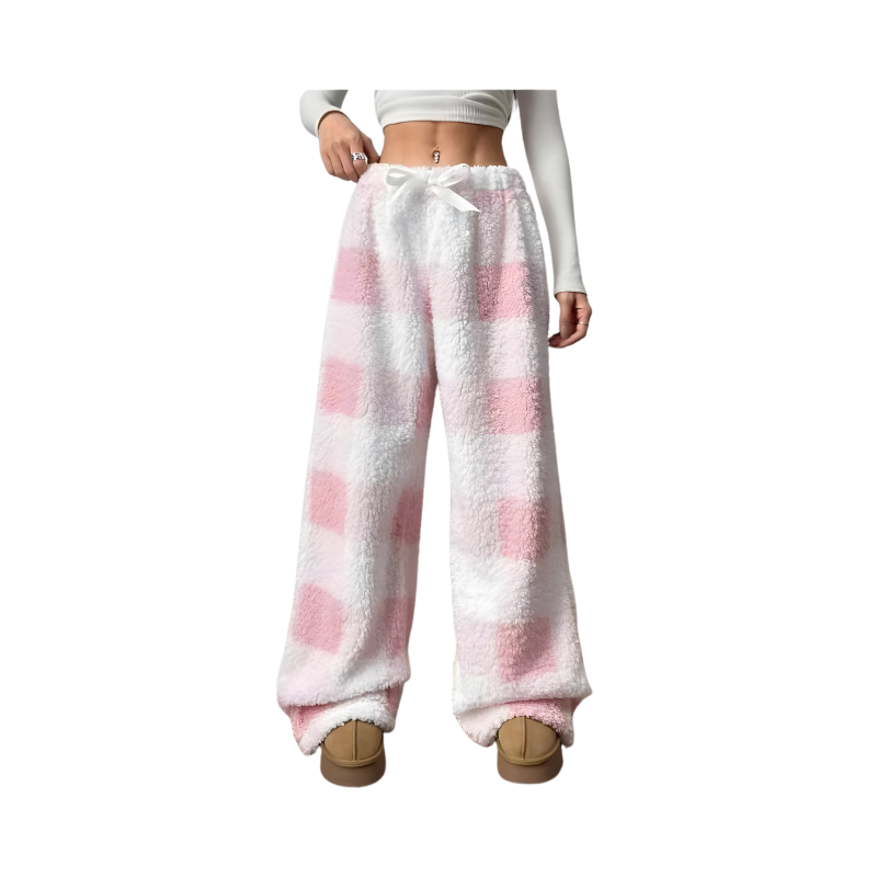 These fuzzy plaid lounge pants feel like wearing a blanket, no joke. the fabric is super soft and warm and i basically lived in them all weekend. they do shed a little at first but after one wash it calmed down.