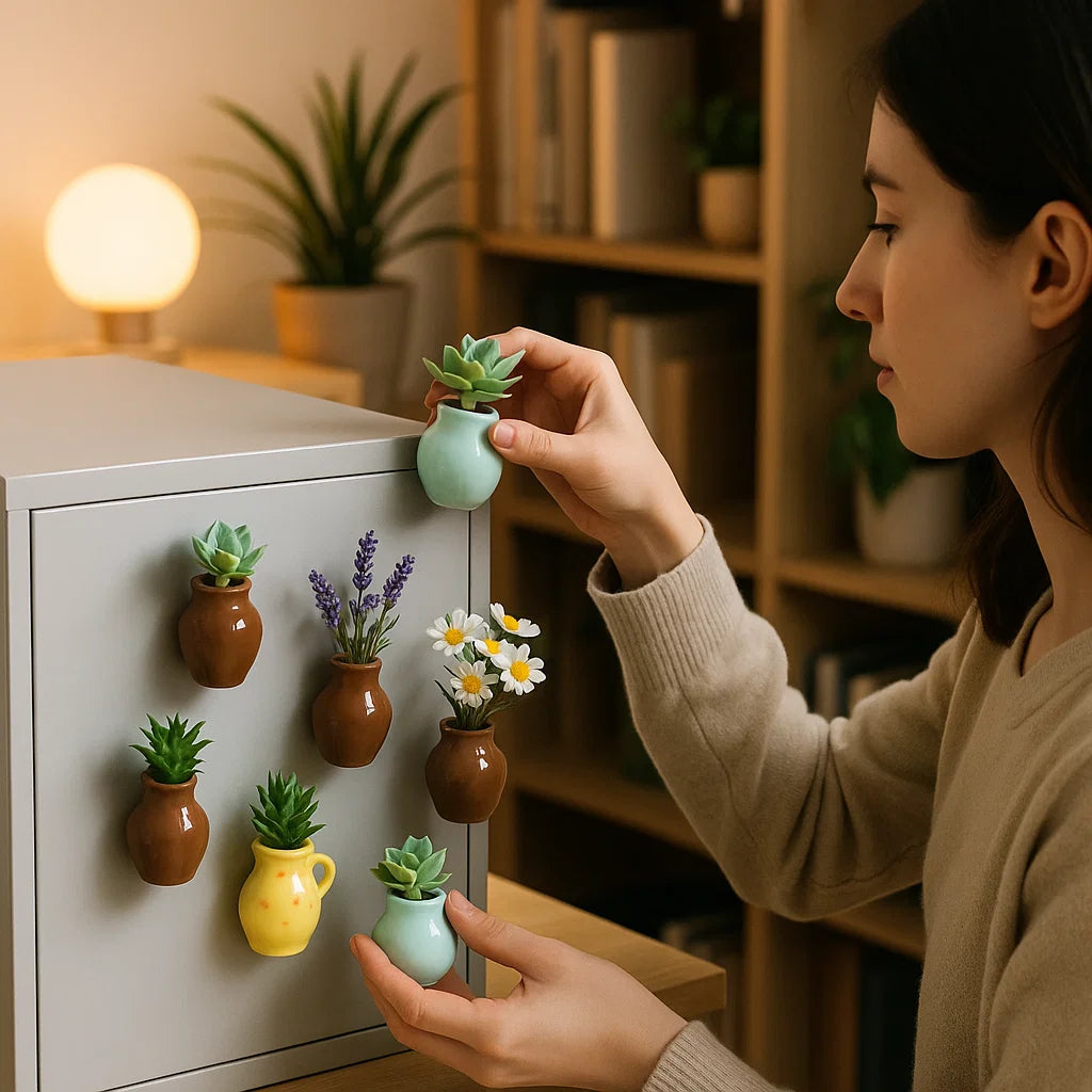 Despite their delicate appearance, each vase is backed with a powerful magnet that keeps it firmly in place. From busy kitchen cabinets to office whiteboards, they stay secure while adding a unique touch to your surroundings.