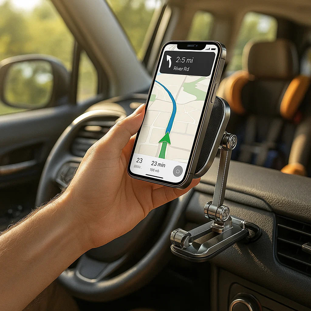 With a smooth 360° swivel and a foldable design, MagnoMount lets you adjust your phone’s angle for perfect visibility, then tuck it away when not in use. Your dashboard stays neat while your phone remains instantly accessible.