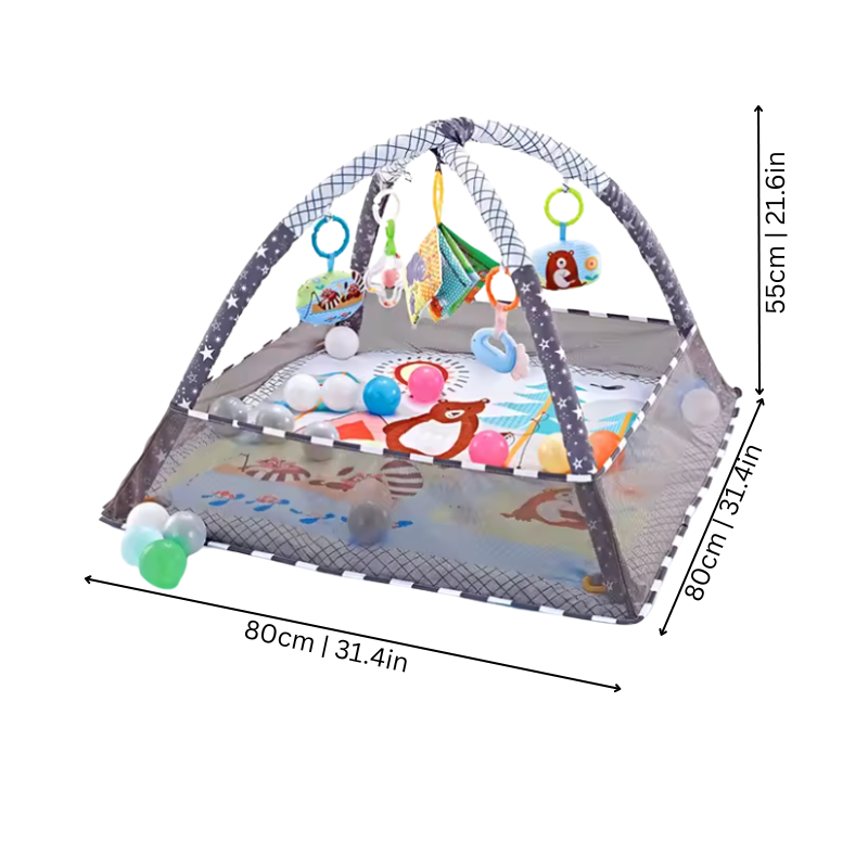 Transform early playtime into a warm, secure, and joyous experience with Mingle—a plush activity gym mat designed to encourage baby’s initial stretches, tummy time, and crawling skills, all while providing a cozy area for you to connect, play, and cherish those lively moments within the comfort of your home.