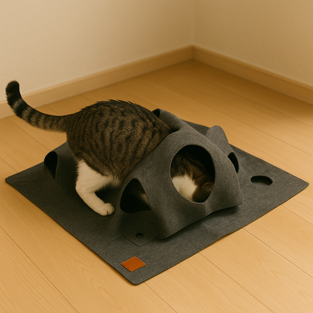 MiniQuest is a foldable play mat that transforms your floor into a sensory playground. With tunnels to explore, holes to peek through, and soft textures to nap on, it delivers hours of fun for cats of all ages.