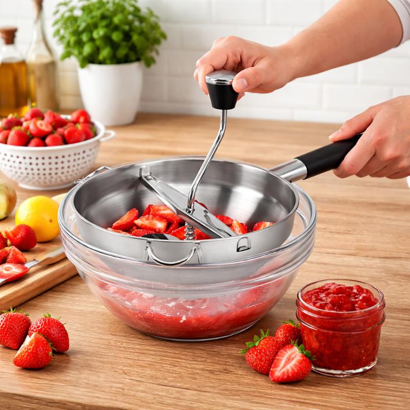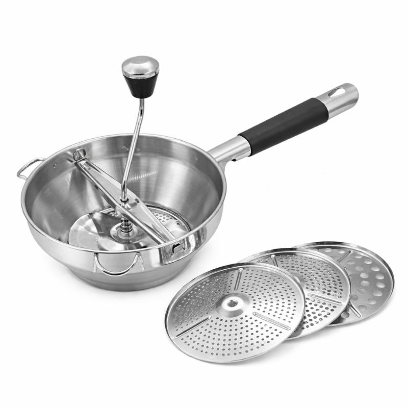 - Manual Stainless Steel Food Mill with 3 Interchangeable Discs