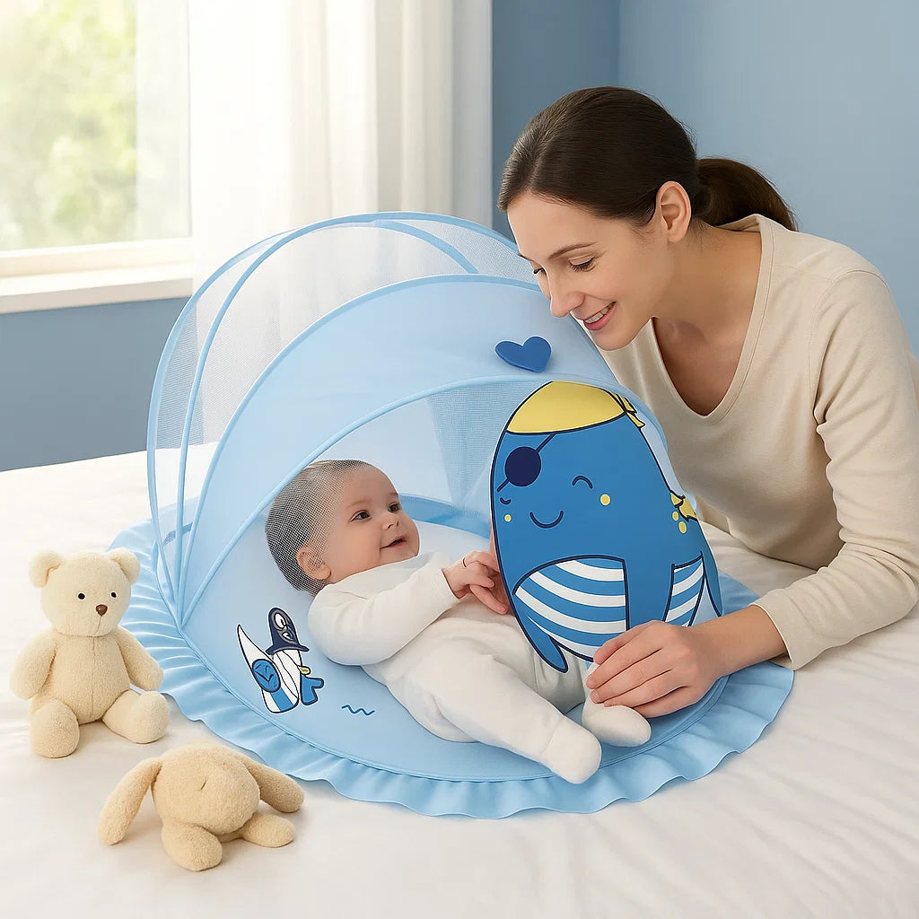 Give your baby a safe and peaceful sleep with NapNest, the adorable whale-inspired mosquito net designed to block out bugs while keeping the air fresh and comfortable. Its breathable mesh creates a gentle barrier that offers your little one uninterrupted rest, whether you’re at home or out enjoying the day together. The charming design and thoughtful construction make it an essential for any parent who values both comfort and convenience.