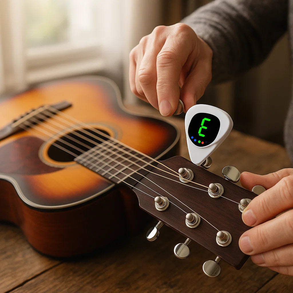 - 2-in-1 Guitar Pick with Built-In Tuner