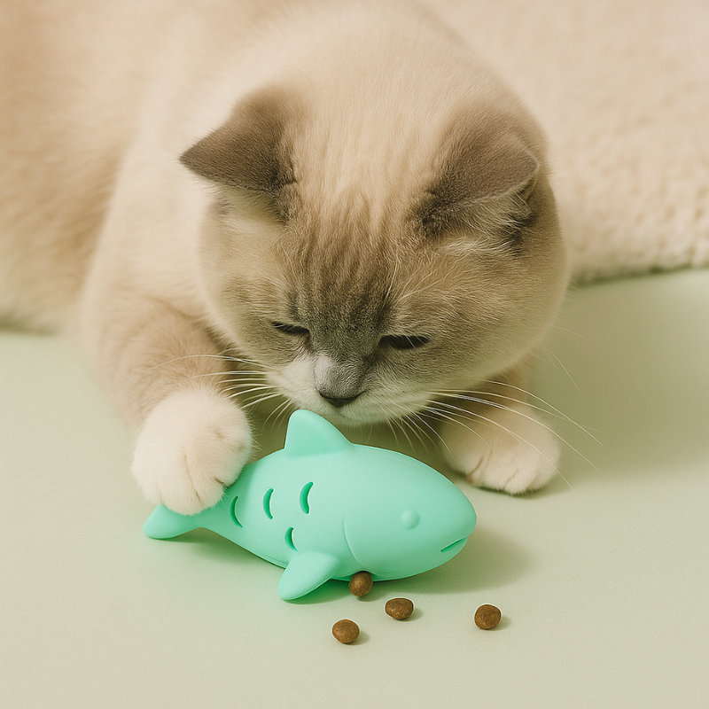 Enhance your pet's day with Playfish, a safe and engaging toy crafted to keep cats lively, intrigued, and relaxed while also aiding in their dental wellness through every jump, nibble, and sprint.