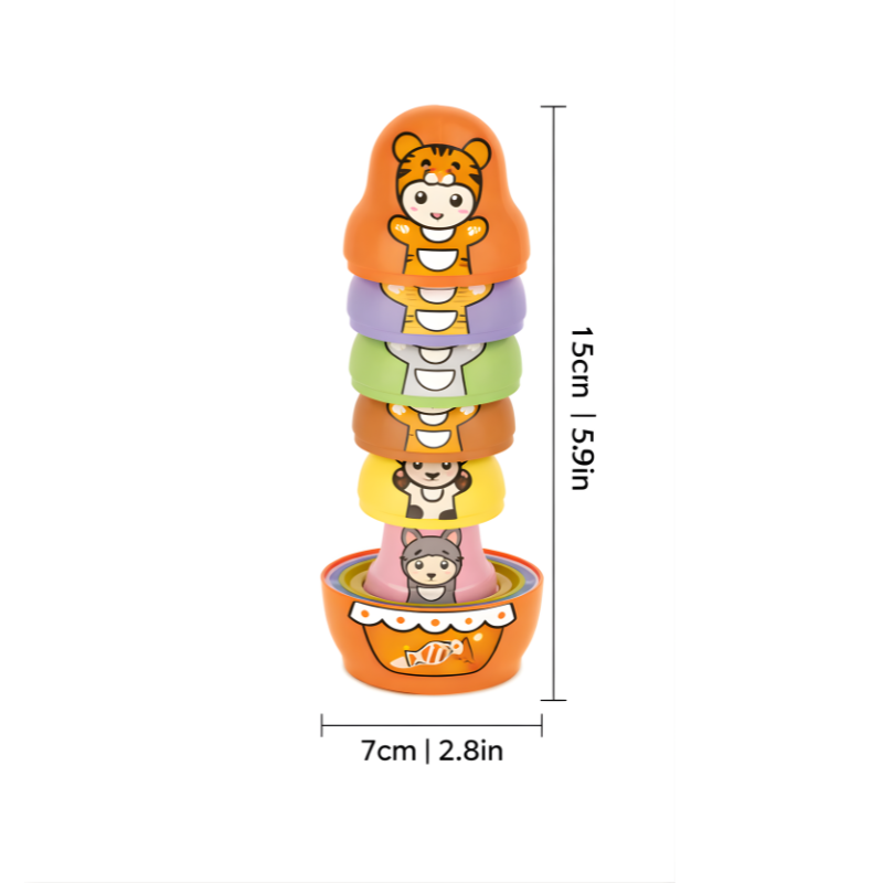 Each cup features smooth edges and a design that fits comfortably in small hands, enabling kids to engage in independent play with assurance. Vivid colors, charming animal motifs, and friendly doll visuals immediately draw attention and ignite creativity. As kids stack, nest, and organize, they inherently enhance their hand-eye coordination, sensory skills, and visual recognition. This also provides a fantastic chance for meaningful playtime between parents and children.