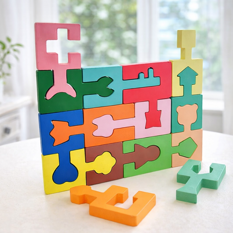 Made from smooth, premium wood with exact cuts and rounded edges, Plexo is crafted for safe, carefree play. The vibrant colors and whimsical shapes aid in color and shape identification while refining fine motor skills and finger agility. Ideal for solitary play or cherished moments with parents, it’s an enduring Montessori-inspired puzzle that promotes patience, focus, and meaningful engagement.