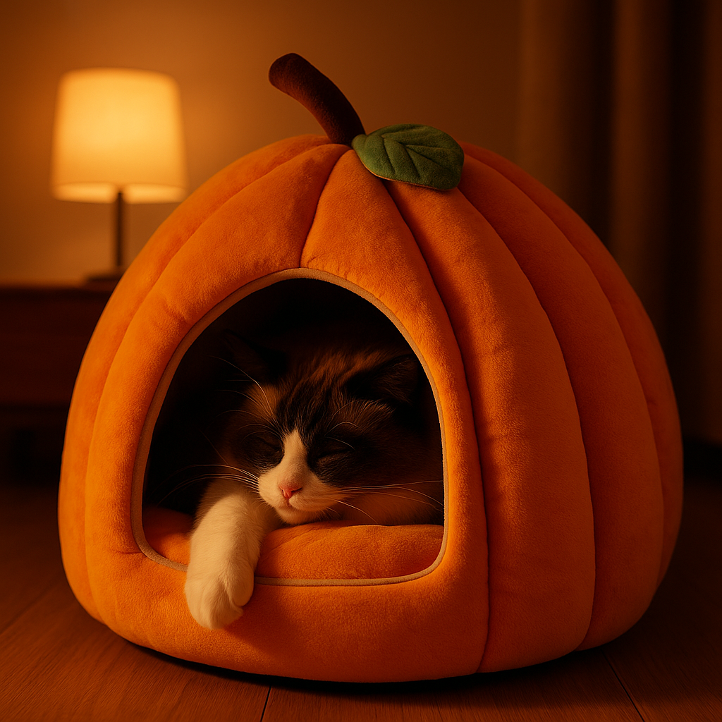 Seasonal Pumpkin-shaped Cat Hideaway for Cuddles