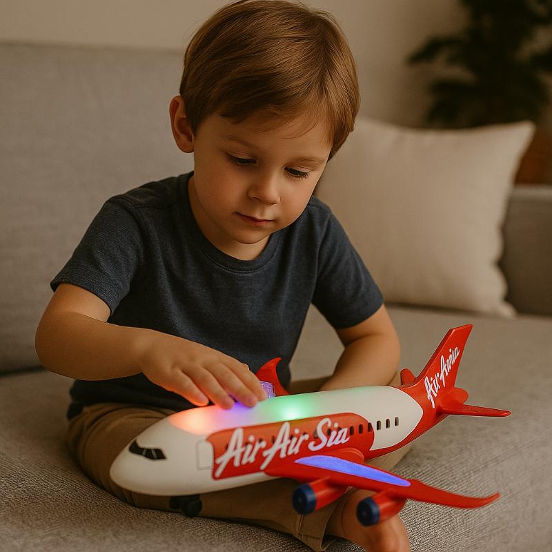 Provide your child with endless fun and creativity through SkyGlimmer, a luminous airplane toy filled with sounds that encourages imaginative play, enhances motor abilities, and keeps little explorers happily engaged from the instant it powers up.