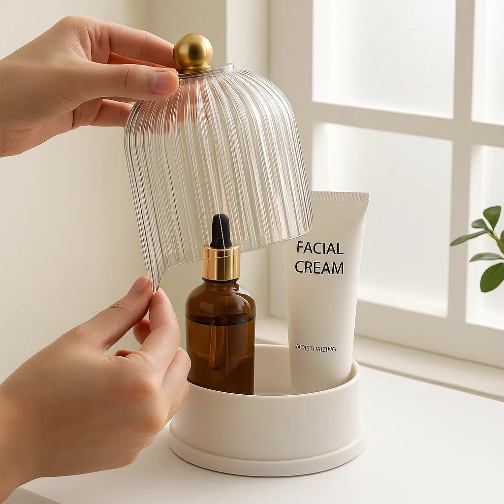 Keeps my items organized and protected from dust. The clear dome is stylish and practical.