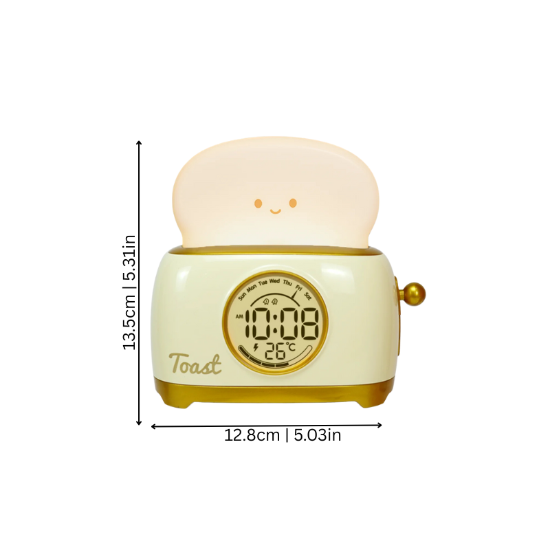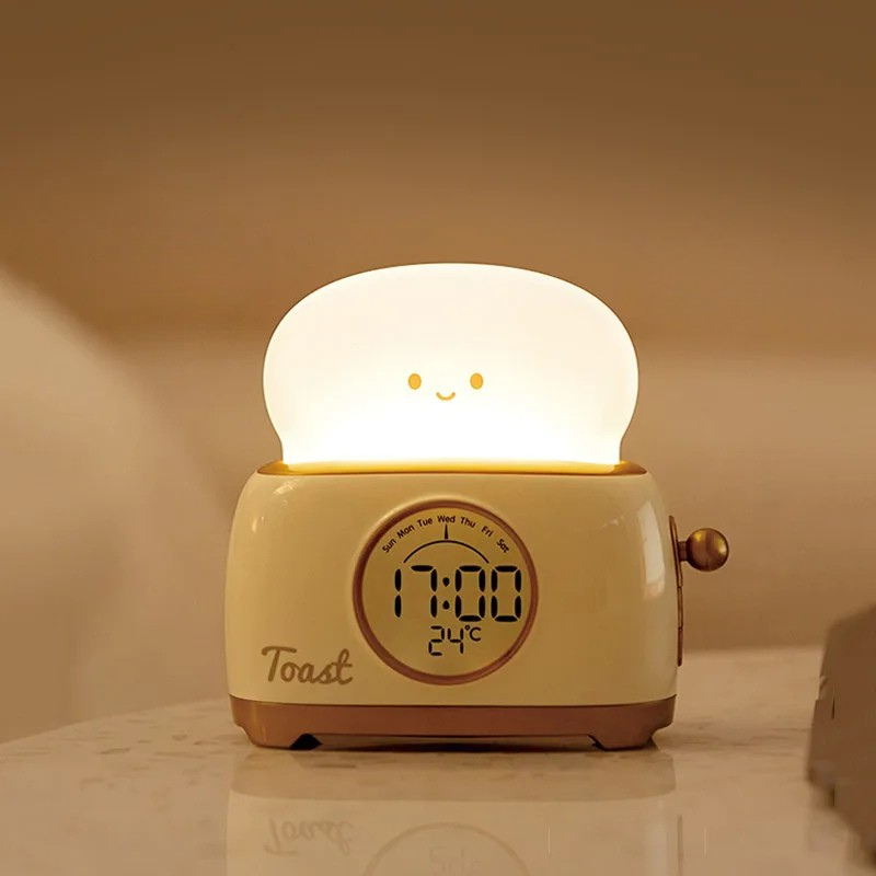 Bring tranquility to bedtime and make mornings easier with Snoozeo, a delightful bedside buddy designed for kids that combines a gentle night glow, an effortless morning alert, and straightforward sleep-training assistance in a charming toaster-like clock that instills routine and comfort in your child's sleeping space without the added pressure.