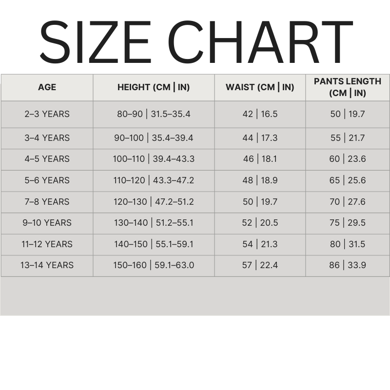 - Available Sizes: 2-3 Years, 3-4 Years, 4-5 Years, 5-6 Years, 7-8 Years, 9-10 Years, 11-12 Years, 13-14 Years