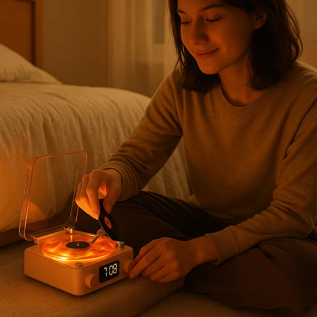 Blend the nostalgic charm of vinyl with the convenience of modern technology using SpinTune—a wireless record player that delivers rich sound and sets the mood with customizable lighting. It’s music and atmosphere in one stylish package.