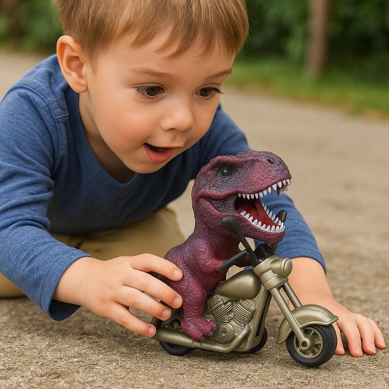 super fun toy, the pullback feature is solid and it actually goes pretty far. the dino detail is surprisingly good and it has that funny tough guy look. my son made motorcycle noises for like an hour straight.