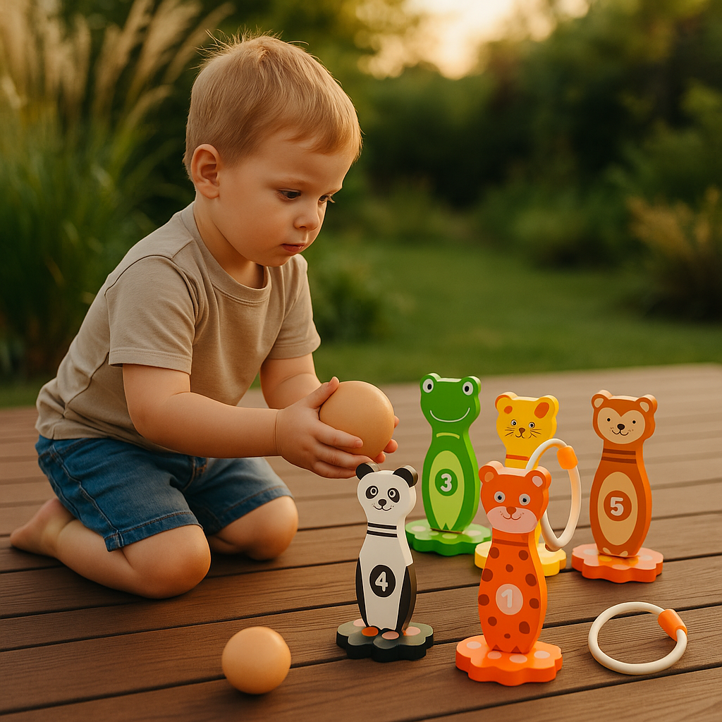 This is one of the best wooden toy sets I’ve purchased! My little ones have so much fun playing both bowling and ring toss, improving their coordination and motor skills. The set is durable, beautifully crafted, and perfect for interactive playtime with siblings or friends.