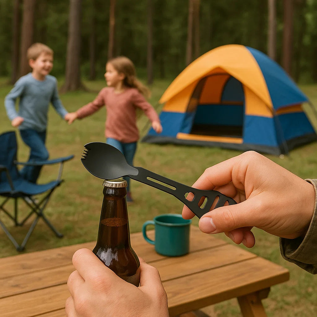 Keep your gear light and your options open with TrailTine, the compact all-in-one utensil and tool designed for explorers, campers, and adventurers. It’s a fork, spoon, bottle opener, and wrench—all in one sturdy piece.