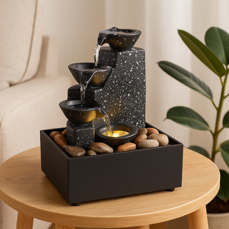 Whether positioned on your desk, in your bedroom, or as part of your meditation nook, this fountain fosters harmony and balance in every setting. The soft water flow establishes a soothing rhythm that keeps you centered and attentive. It serves as an ideal partner for extended work hours, peaceful evenings, or mindfulness practices.