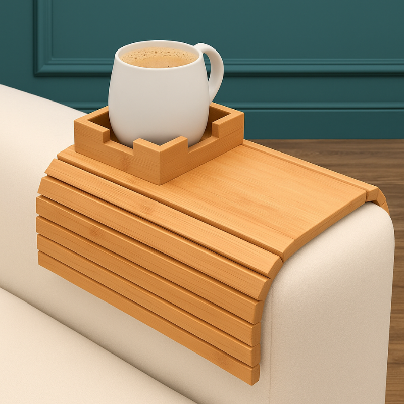 Perfect for movie nights! It gives me a flat surface on my soft couch arm and keeps everything within reach. The bamboo is high quality and easy to wipe clean.