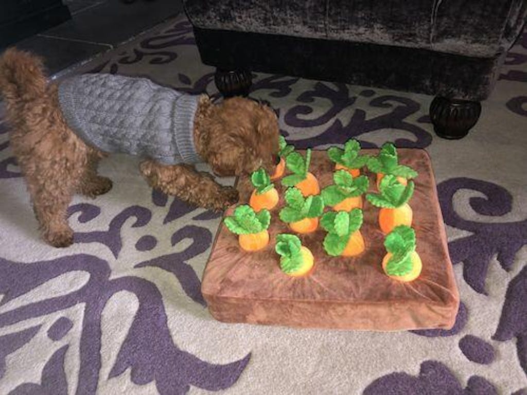Freddie my 51lb chihuahua absolutely loves his carrot garden. Keeps him entertained. Good value for money.