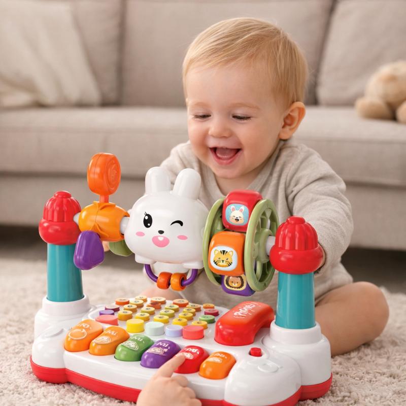 Tunaro unites a piano keyboard, phone-style imaginative play, rotating gears, percussion taps, and engaging buttons to form a vibrant, multi-sensory experience. Children can press, spin, tap, and enjoy as joyful sounds, tunes, and responses provide feedback for each interaction. The charming rabbit design and vivid colors quickly attract attention, ensuring that little ones remain focused while they naturally investigate cause and effect.