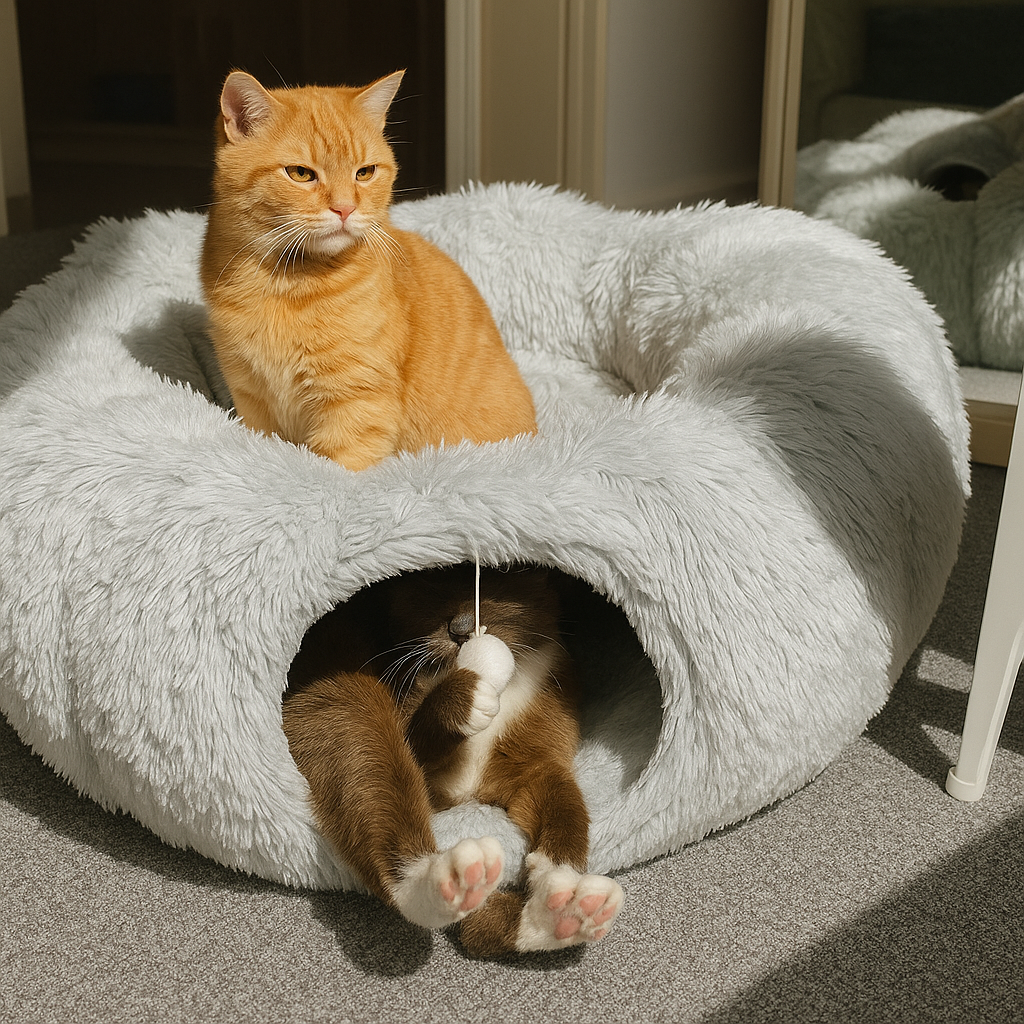 - Luxurious Plush Cat Tunnel Bed for Indoor Play