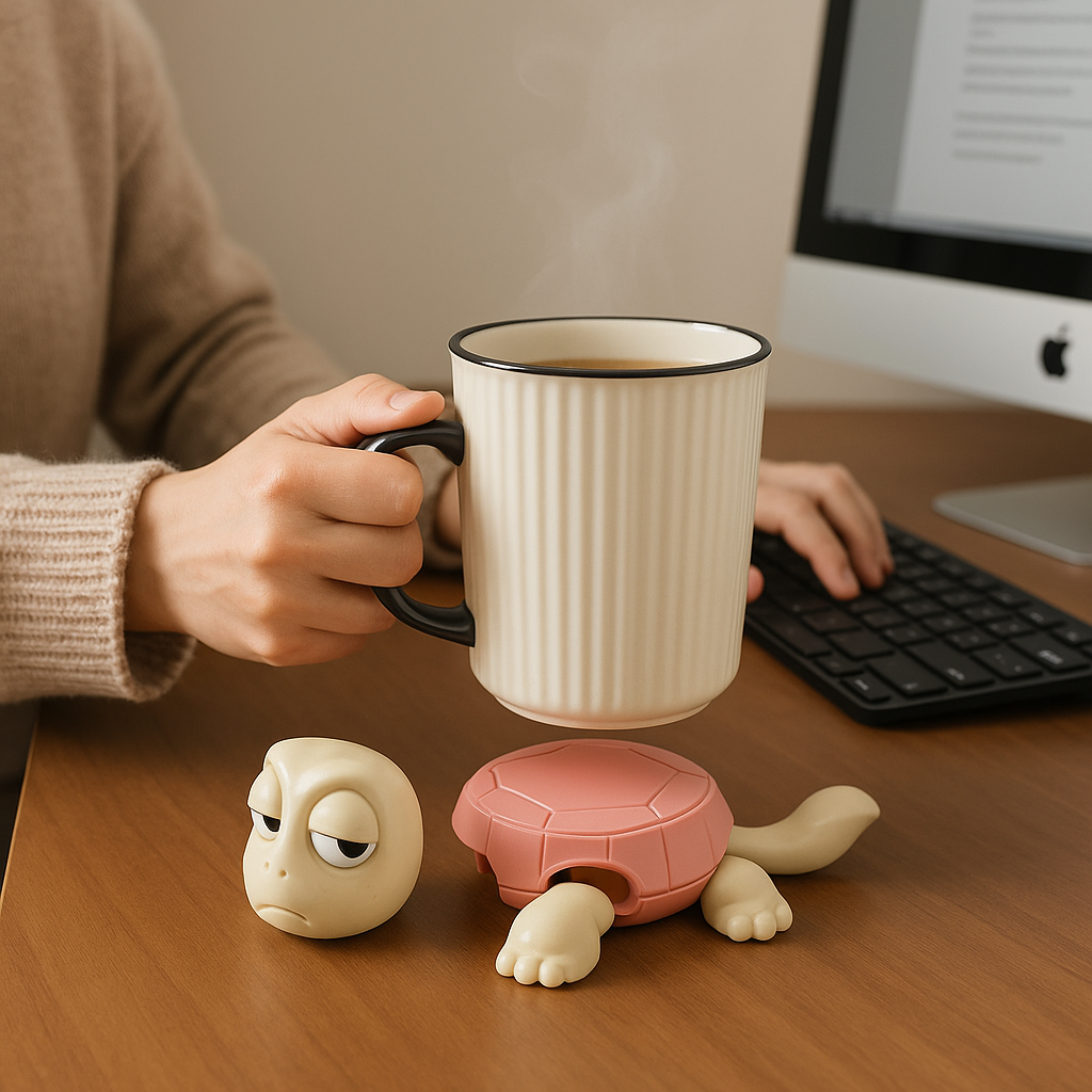Add a touch of humor to your coffee table with TwistCoast, the playful coaster shaped like a panicked turtle. It keeps drinks steady while adding a fun, quirky element to your space.
