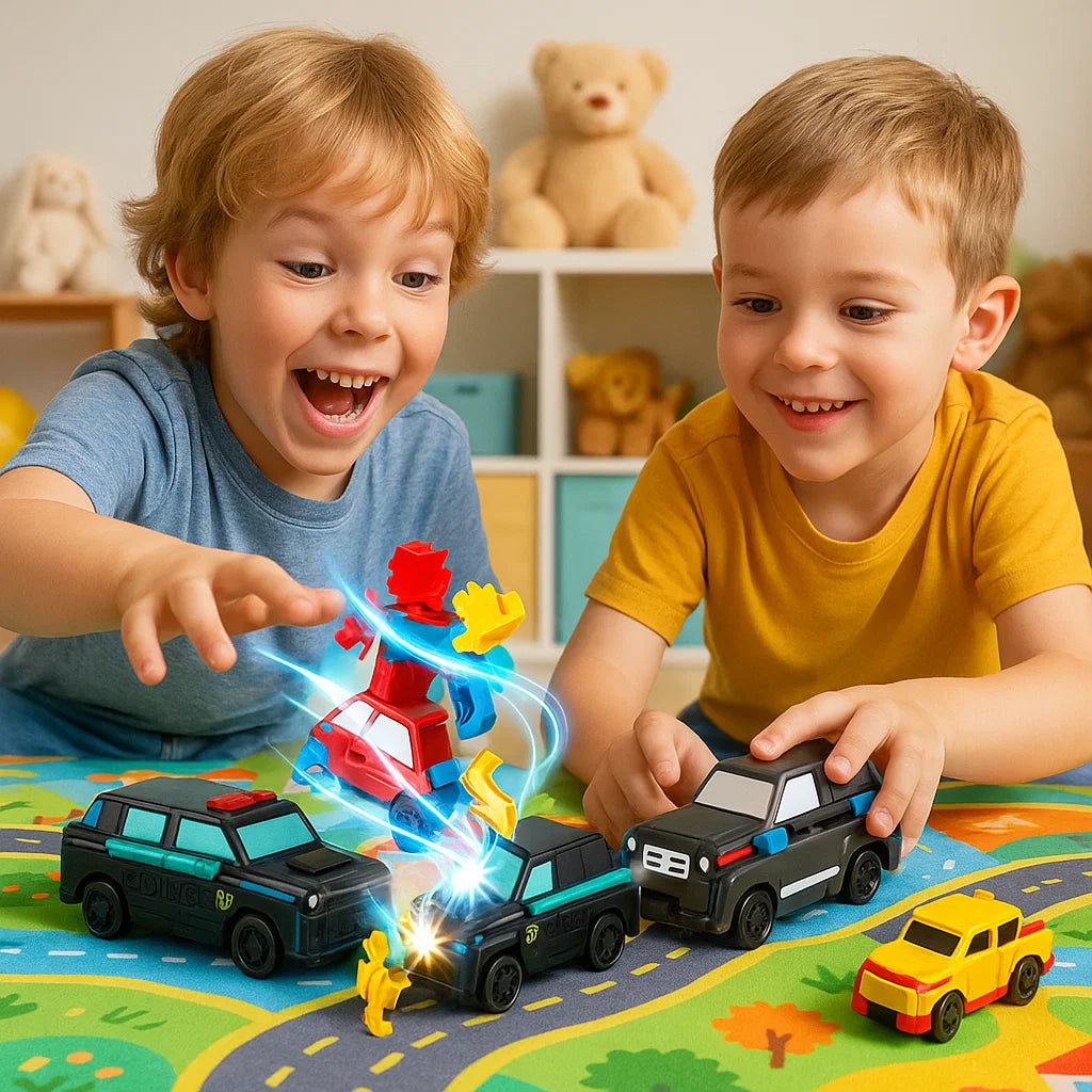 With a simple twist, each car transforms into a completely different model, sparking curiosity and excitement. This interactive feature keeps children engaged longer and encourages them to invent new games with each transformation.